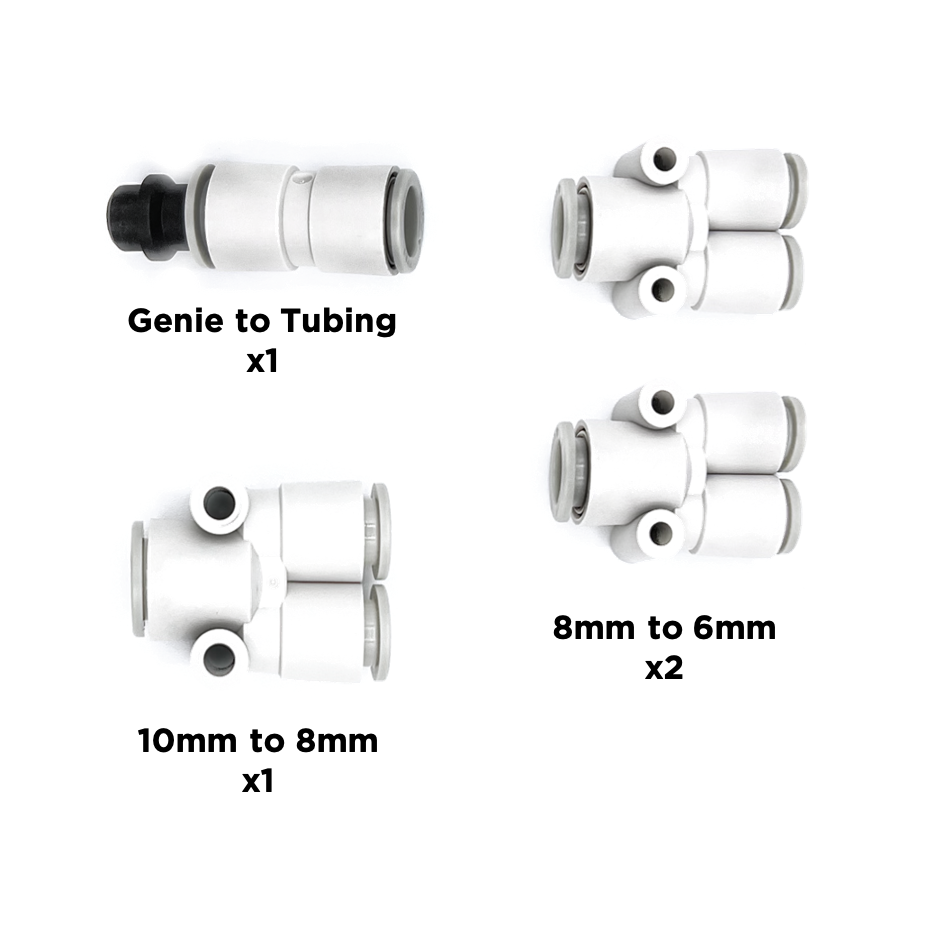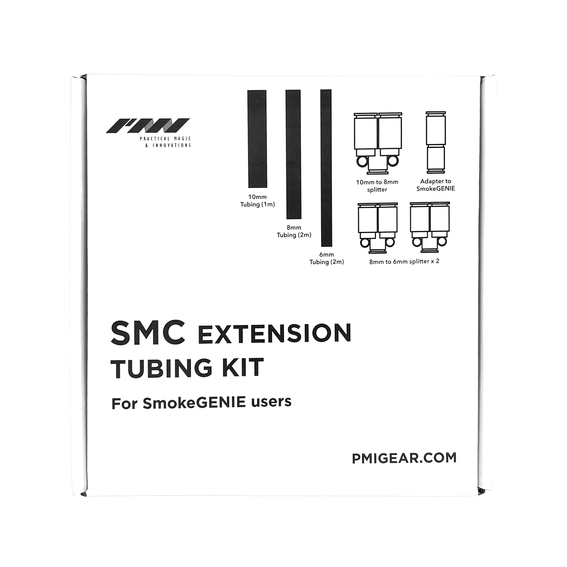 And one adapter nozzle to connect the Tubing to the SmokeGENIE main unit.