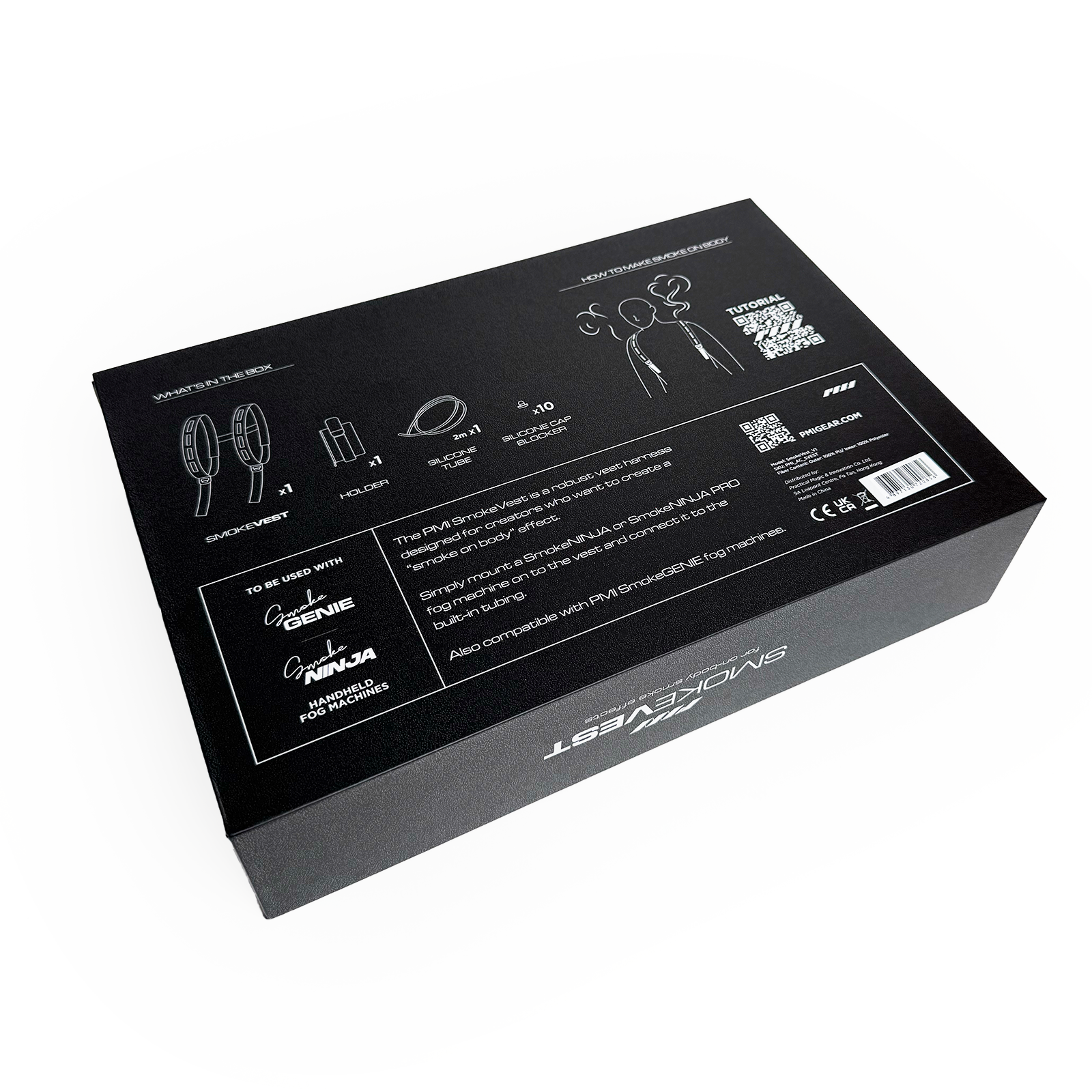 The PMI SMOKE VEST is a splash-proof, heat resistant vest with built-in tubing that allows you to direct the smoke to almost anywhere In your body. Perfect for special effect artists, costume designers, and creatives of all types!